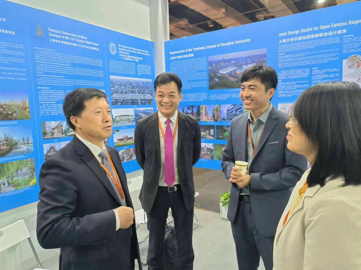 展馆现场,上海大学重点展示了上海城市更新与可持续发展研究院创办的《城市更新》期刊,发布了上大-人居署联合发起的首届世界城市更新最佳实践案例(WURBP1)评选征集通知等。现场还展示了上海大学与同济大学开展的开放式校园更新联合课程设计、延长校区开放式校园更新及上海大学上海美术学院吴淞新院区更新案例,华东政法大学、上海音乐学院等兄弟院校开放式校园更新案例,上海青浦区徐泾镇、中交集团、临港集团、腾洲集团、乔智科技等多家合作单位开展城市更新及城乡融合实践样板范例等。