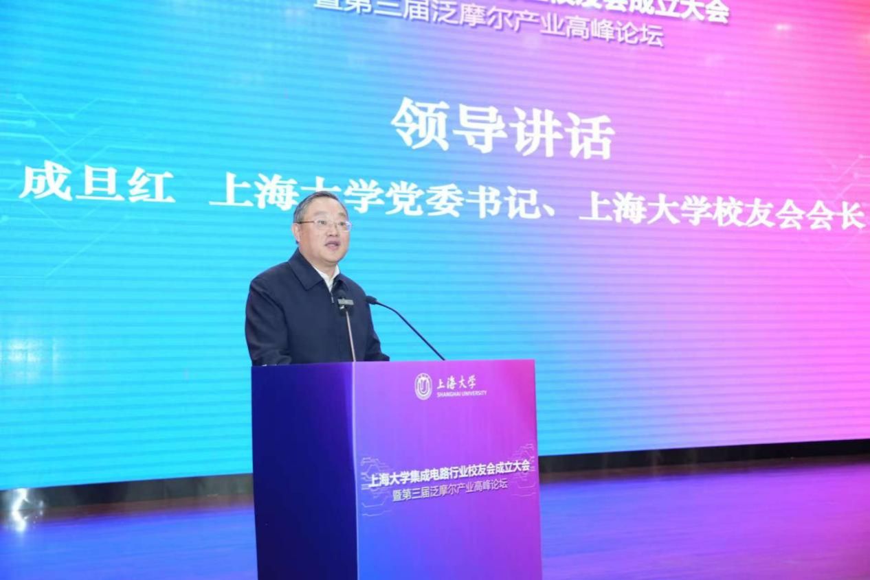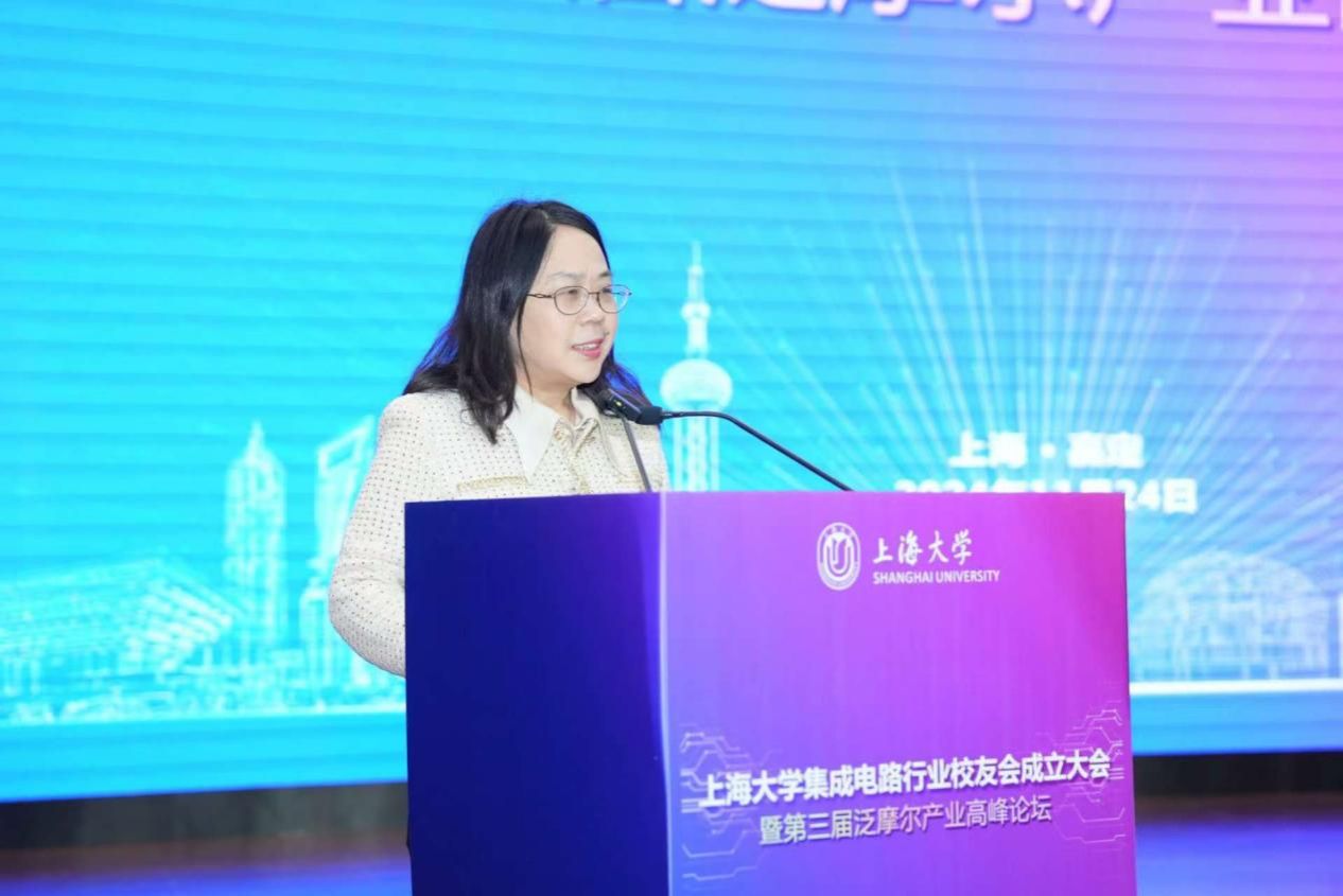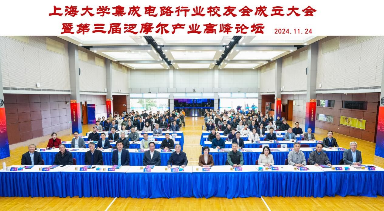 11月24日,上海大学集成电路行业校友会成立大会暨第三届泛摩尔产业高峰论坛在嘉定校区举行。经过两年多的筹备,本次大会吸引了众多集成电路行业精英、杰出校友以及各界领导嘉宾的积极参与,共同见证上海大学在集成电路领域发展的又一里程碑时刻,为推动集成电路产业蓬勃发展汇聚强大力量,奏响创新发展的新乐章。上海大学党委书记、上海大学校友会会长成旦红,嘉定区委常委、常务副区长陆祖芳,上海大学党委副书记、副校长胡大伟,武汉新芯集成电路股份有限公司董事长杨士宁校友,原上海电力学院校长曹家麟校友等领导嘉宾及校友们参与大会,为校友会的成立送上诚挚祝福,携手展望集成电路行业的璀璨未来。成立大会由上海大学副校长张建华主持。