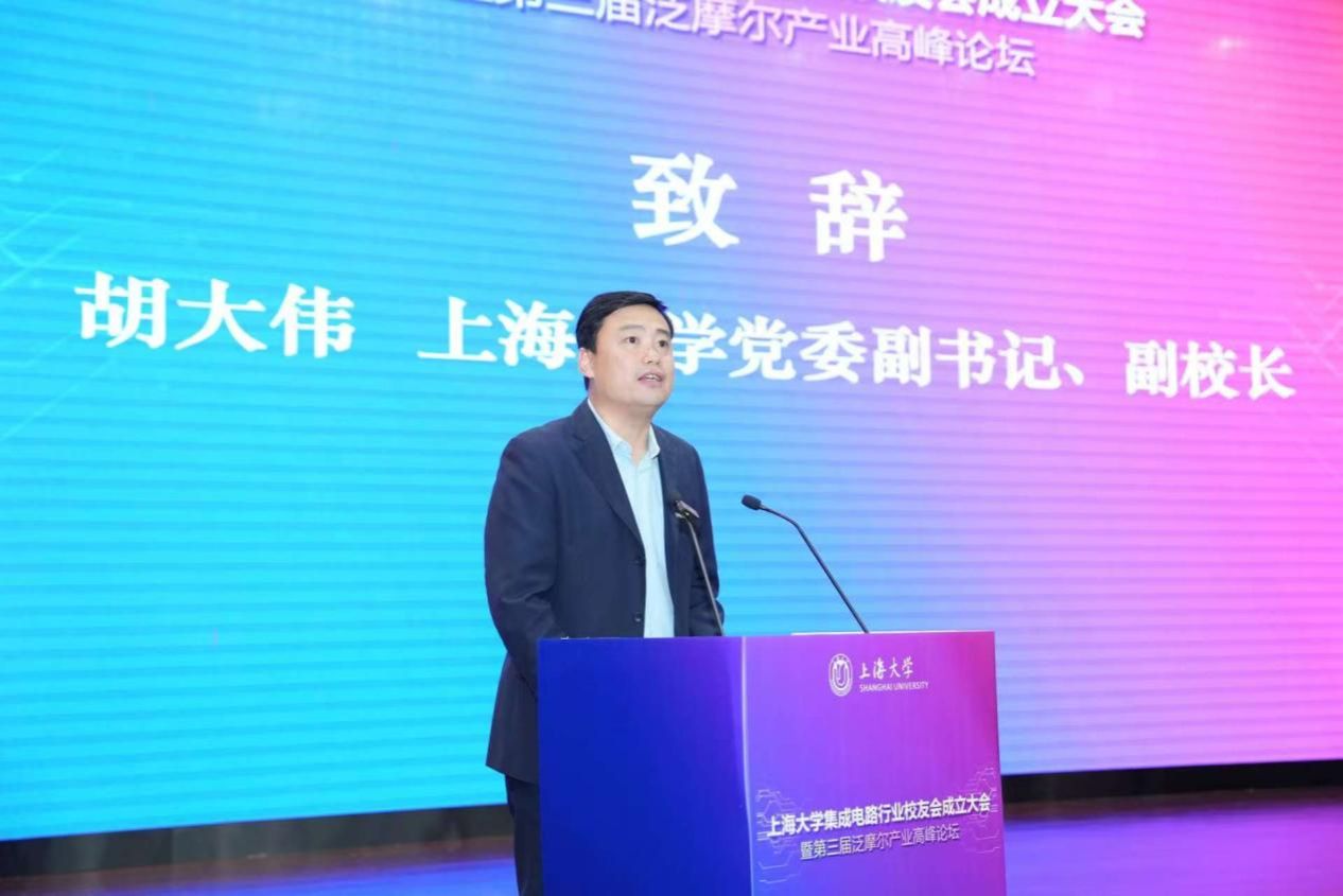 上海大学党委副书记、副校长胡大伟在致辞中对校友会的正式成立致以最热烈的祝贺。他表示,集成电路产业是国家战略性新兴产业和经济重要支柱,集成电路行业校友会的成立是助力集成电路行业发展与人才培养协同共进的新起点,期盼集成电路行业校友会秉持开放包容的理念开展活动,增强凝聚力影响力,携手为行业、母校和国家科技事业发展贡献力量。
