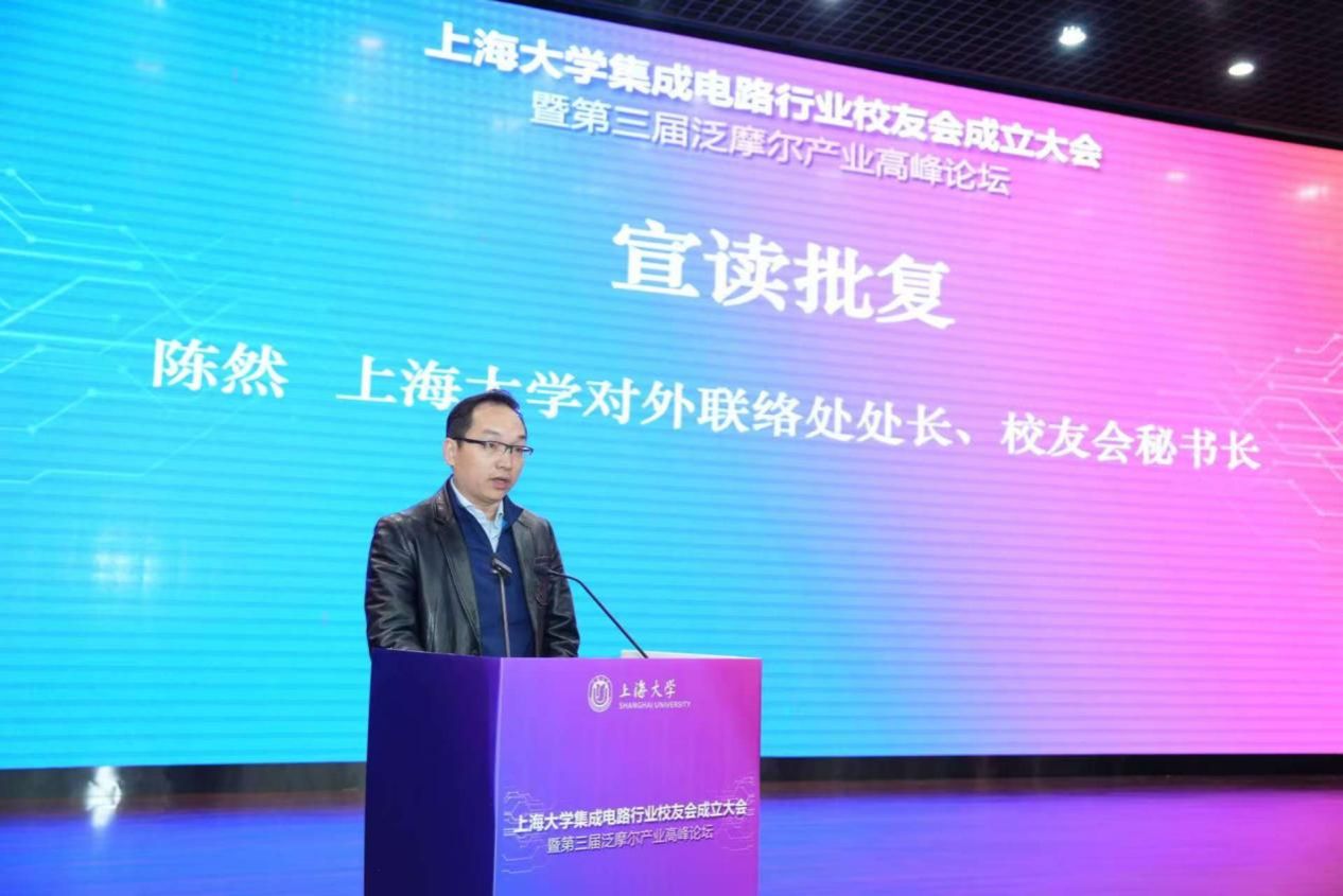 上海大学对外联络处处长、校友会秘书长陈然宣读了《关于同意成立上海大学集成电路行业校友会的批复》。随后,与会代表们审议并通过了《上海大学集成电路行业校友会章程(草案)》以及理事成员名单,标志着上海大学集成电路行业校友会第一届理事会正式组建,为校友会的有序运作和长远发展奠定了坚实基础。