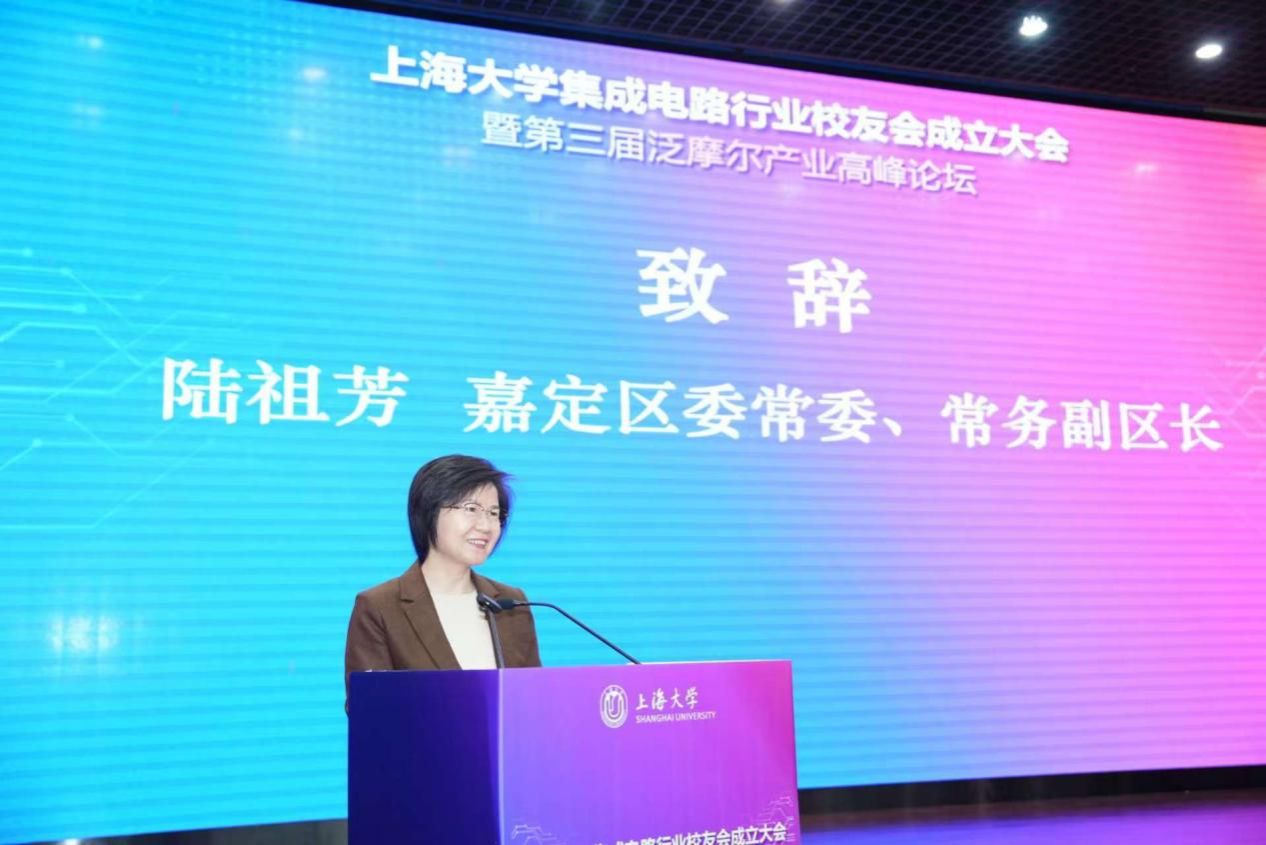 嘉定区委常委、常务副区长陆祖芳在致辞中表示,此次活动为集成电路行业交流合作搭建了重要平台,对推动区域产业发展具有深远意义,期待上海大学校友积极投身嘉定集成电路产业发展,共同打造产业创新集群,助力上海乃至全国集成电路产业迈向全球价值链高端,为实现科技强国贡献力量。