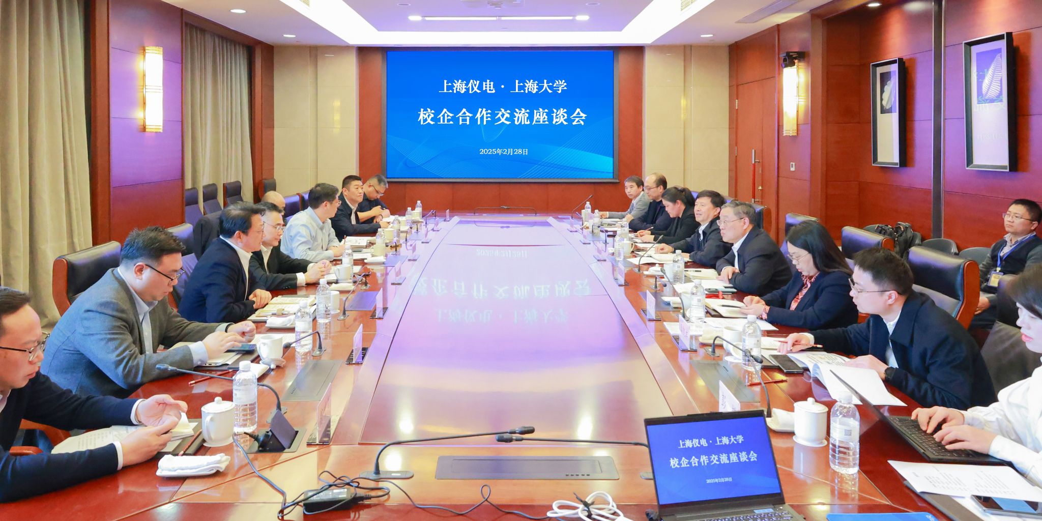 2月28日,上海大学与上海仪电(集团)有限公司校企合作交流座谈会在宝山校区乐乎新楼召开。上海仪电党委书记、董事长毛辰,党委副书记、总裁张建明,党委委员、副总裁黄金刚,副总裁刘山泉,校党委书记成旦红,校党委副书记、校长刘昌胜,副校长张建华出席会议。会议由刘昌胜主持。