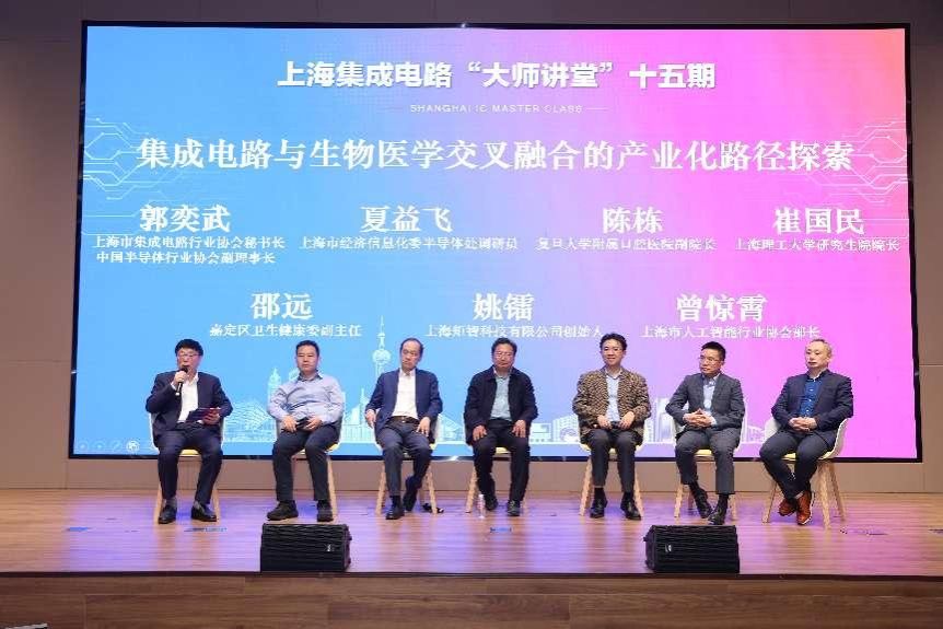 在随后的主旨报告环节,上海大学微电子学院院长赵建龙带来主题为《基于核酸自组装的半导体器件制造技术》的专题报告。上海交通大学医学院附属瑞金医院医学芯片研究所所长陈昌带来主题为《硅光传感芯片技术的原理和应用》的专题报告。现场还举行了集成电路与生物医学交叉融合的产业化路径探索圆桌论坛,专家们共同探讨了集成电路如何推动生物医学领域发展,破解医学难题、推动精准医疗、服务人民健康等热点问题。