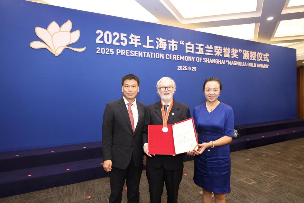 9月29日,2025年上海市“白玉兰荣誉奖”颁授仪式举行,上海大学理学院澳大利亚籍教授杰夫·瑞默斯(Jeffrey Robert Reimers)获此殊荣。上海市市长龚正为获奖者颁授证书。此前,杰夫教授曾获得2017年上海市“白玉兰纪念奖”。上海大学副校长于雪梅、材料基因组工程研究院常务副院长任伟出席颁奖仪式,见证这一重要时刻。