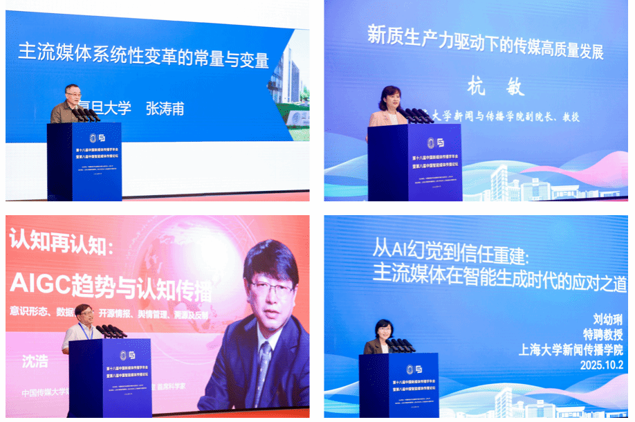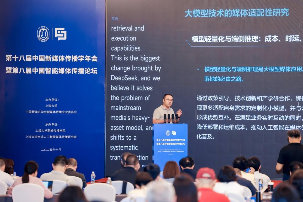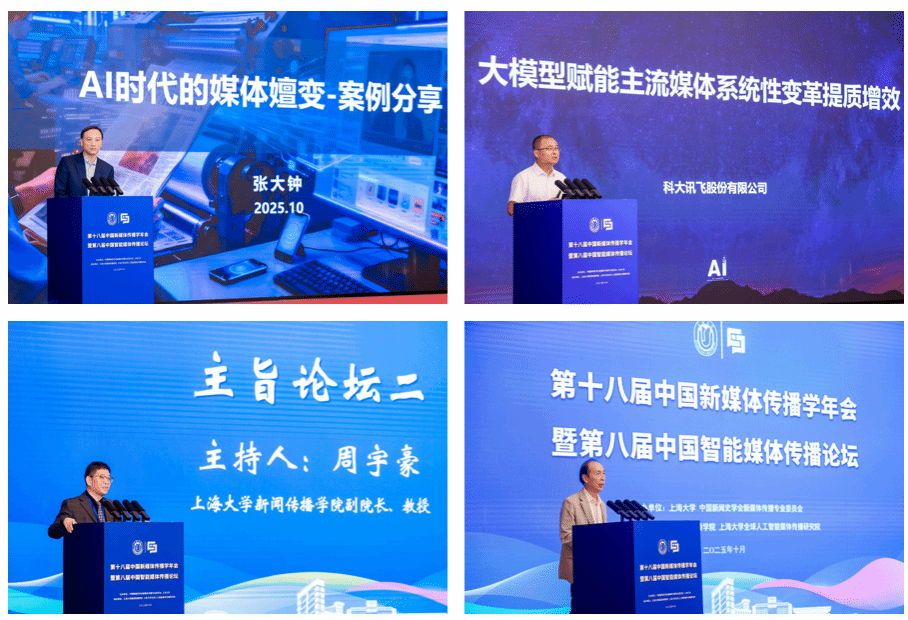 10月12日,第十八届中国新媒体传播学年会暨第八届中国智能媒体传播论坛在上海举办。本次论坛以“智能传播时代的主流媒体系统性变革”为主题,为在智能传播变革、社会发展、国家战略需求的整体视域下思考和探讨系统性变革提供理论支撑和实践指导。论坛由上海大学、中国新闻史学会新媒体传播专业委员会共同主办,上海大学新闻传播学院、上海大学全球人工智能媒体传播研究院承办。来自国内外高校、主流媒体、智能媒体企业和政府主管部门的近300位代表参会。
