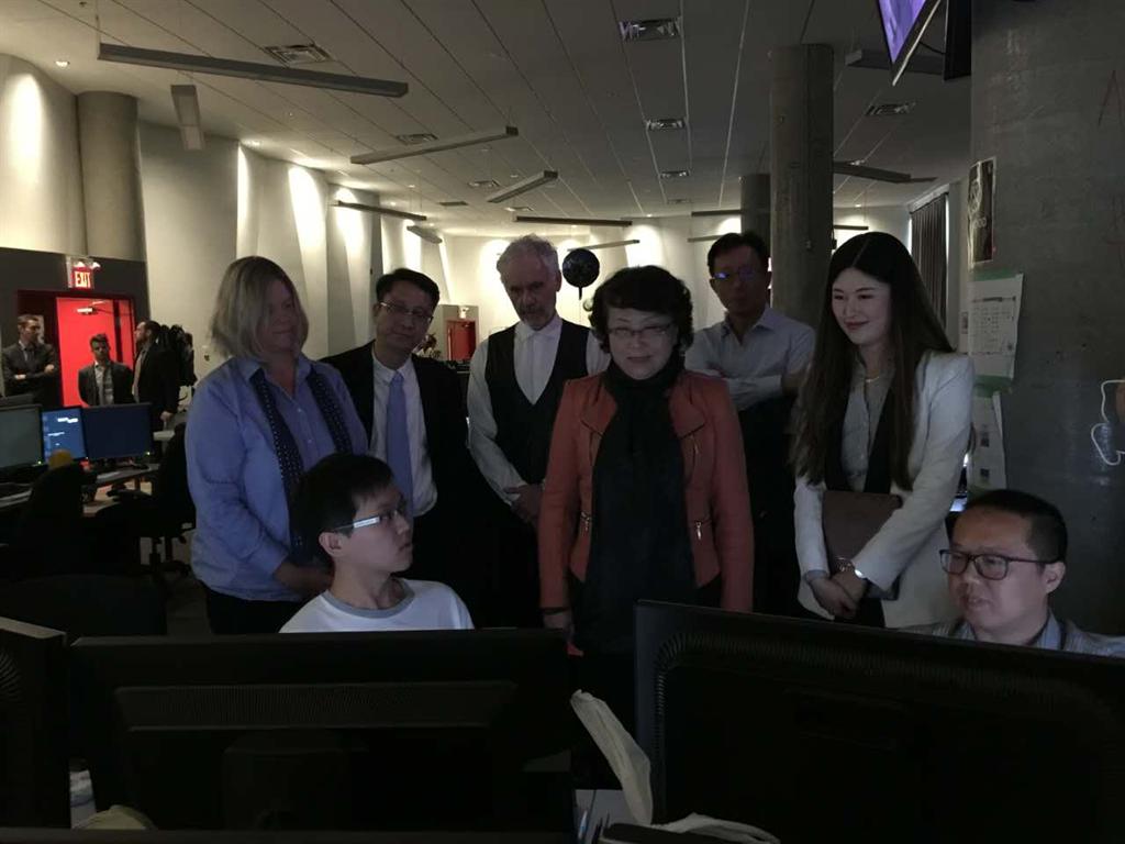 James院长热烈欢迎翁市长代表团的到访,详细地介绍了温哥华电影学院的发展历史、取得的杰出成绩、以及世界知名校友等。温哥华电影学院目前有八个校区,代表团此次访问的是动画与视觉效果校区,该校区坐落于温哥华市中心,拥有世界一流的动作捕捉系统和专业摄影棚。翁市长一行观看了学生们的影片拍摄和动漫作品制作过程,并详细询问了动作捕捉系统的技术应用和产业对接等情况。翁铁慧希望上海大学也能建立和装备世界一流的动作捕捉系统。