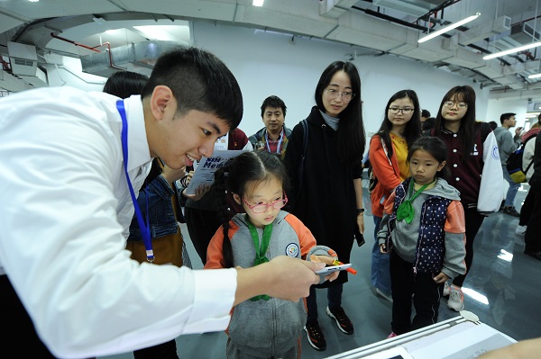 11月17-18日,第十五届“挑战杯”中国银行全国大学生课外学术科技作品竞赛作品展迎来了“社会开放日”,进入终审决赛的715件作品及港澳台地区的40件作品在上海大学宝山校区1号体育场(理工科作品展馆)和东区钱伟长图书馆(文科作品展馆)展出,来自高校师生、广大社会人士及上海大学基础教育集团所属学校、上海交大附属中学、行知实验中学等的中小学生约21000人次前往参观。