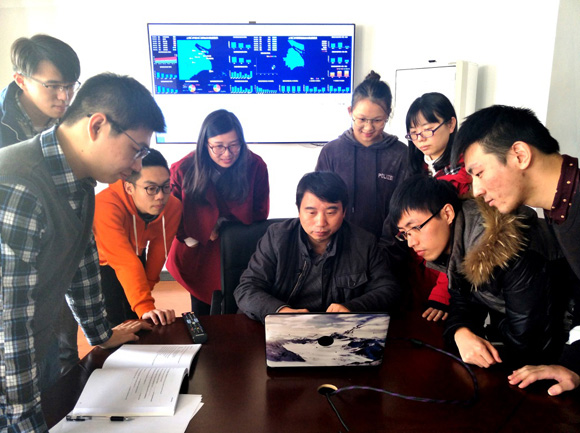 该项目得到学校领导的高度重视,上海大学吴明红副校长亲自担任项目领导小组组长,上海大学信息办主任、计算机学院许华虎教授担任项目实施组组长,课题组发扬攻坚克难的精神(图3,课题组在方案讨论),加班加点,圆满完成中国(上海)国际贸易单一窗口数据实时动态可视化平台。