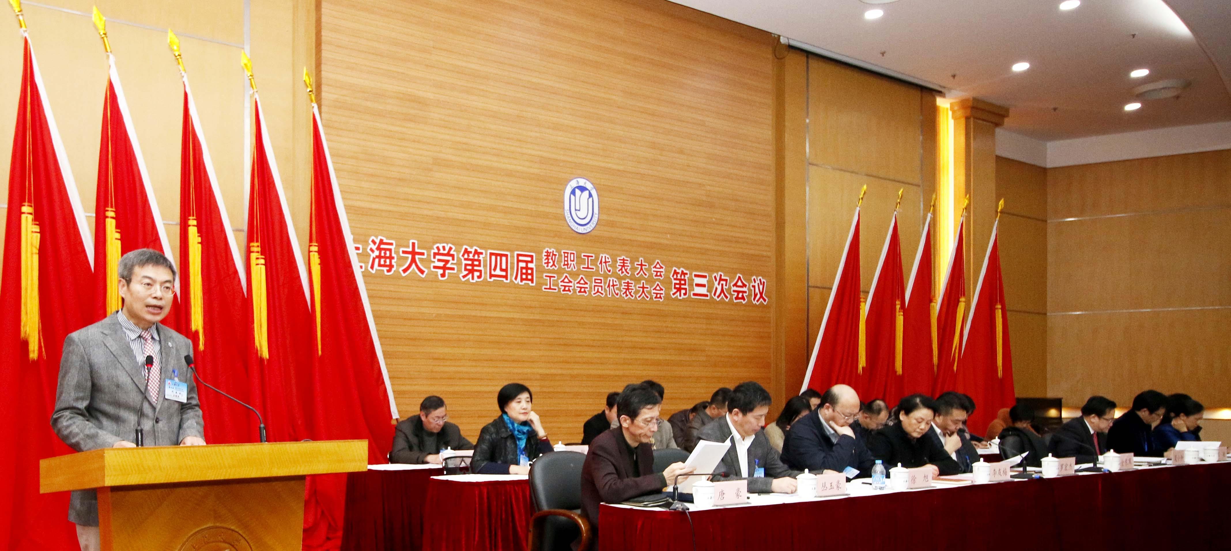 1月11日,上海大学第四届教职工代表大会暨工会会员代表大会第三次会议在校本部图书馆报告厅举行,来自各学院(系统)十四个代表团的正式代表、列席代表、特邀代表,共计约400人出席了大会。