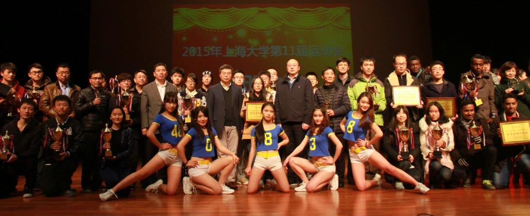 12月21日下午,2015年上海大学第十一届运动会闭幕式暨颁奖大会在校本部伟长楼举行,校长、校体育运动委员会主任金东寒,校党委副书记、副校长、校体育运动委员会副主任徐旭,副校长、校体育运动委员会副主任丛玉豪,各机关部处、学院的领导以及获奖的师生等近千人参加。