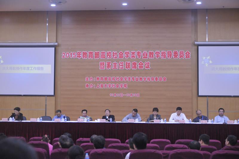 10月17日-18日,由教育部高校社会学类专业教学指导委员会主办,我校社会学院承办的“2015年教育部高校社会学类专业教学指导委员会暨系主任联席会议”在宝山校区召开。教育部高等教育司文科处刘向虹,教育部高校社会学类专业教学指导委员会主任李路路,上海大学党委书记罗宏杰出席会议并致辞,上海大学副校长丛玉豪出席会议,教育部社会学类专业教学指导委员委员,北京大学、清华大学、中国人民大学等113所高校社会学类专业系主任等参加了会议。会议由教育部社会学类专业教学指导委员会副主任、上海大学党委副书记兼副校长李友梅主持。