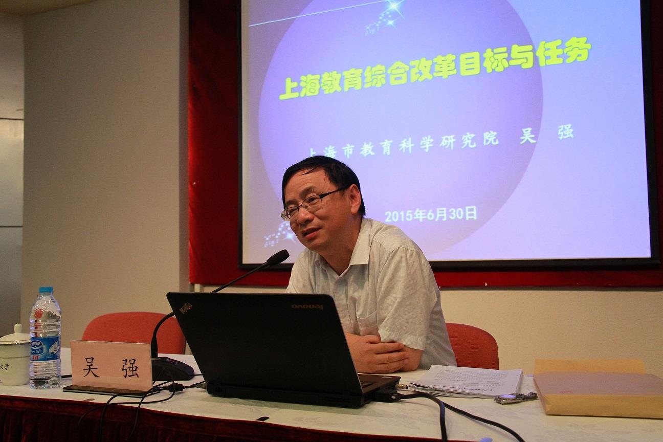6月30日,上海教育科学研究院党委书记、常务副院长吴强为我校校、院两级中心组成员作了“上海教育综合改革的目标与任务”的专题报告。校党委副书记、副校长李友梅,副校长汪敏,校院两级中心组成员,副处级以上干部,上海大学第二十三期中青年干部培训班的学员及民主党派人士200余人聆听了报告会,会议由校党委副书记、纪委书记夏小和主持。