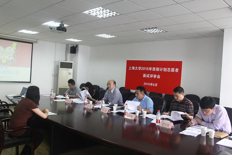 6月8日下午1:30,我校2015年西部志愿者面试评审会在校本部A404举行。校党委副书记、副校长徐旭,党委宣传部部长李坚、党委组织部副部长张洁、学工办主任胡大伟、招毕办副主任汪宏斌、校团委书记许烁担任评委,对参加报名2015年西部计划的志愿者候选人进行了面试。