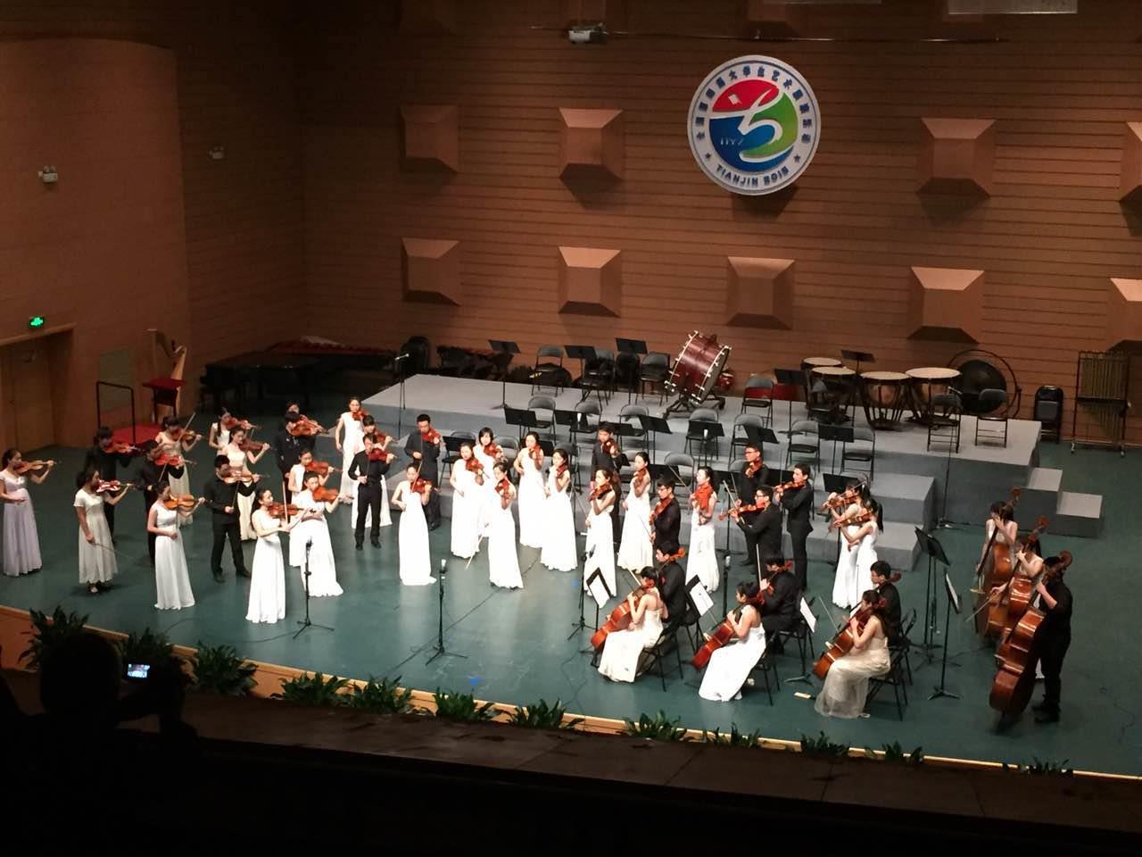 2015年2月27日晚18:30分,天津师范大学雅艺楼音乐厅灯火通明,座无虚席。包括上海大学学生弦乐团在内的来自全国各高校的17支代表队,参与了当天的展演活动。上海大学学生弦乐团作为第四支表演团队登台亮相,演绎了俄罗斯作曲家柴科夫斯基的《弦乐小夜曲-华尔兹》以及德国作曲家勃拉姆斯的《匈牙利舞曲第五号》。