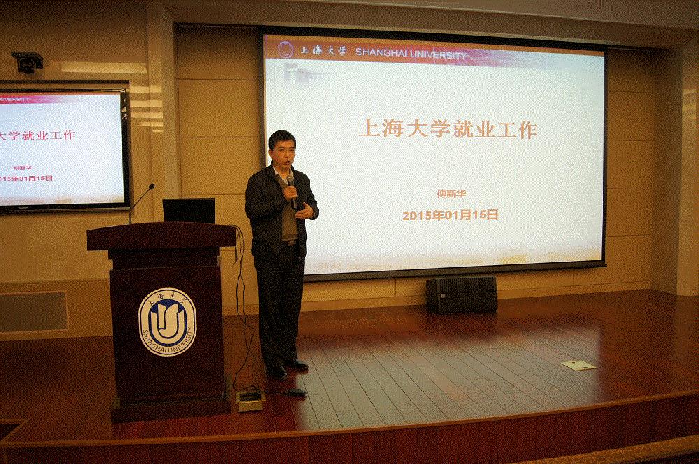 2015年1月15日下午,上海大学2015年毕业生就业工作培训会在宝山校区乐乎新楼学海厅举行,各院(系)就业分管领导、就业专职教师、研究生专职委员、毕业班辅导员共约一百人出席培训会。