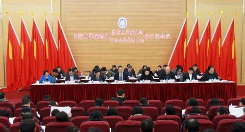 校党委书记、校长罗宏杰同志代表学校向大会作《行政工作报告》。罗宏杰指出,2014年,是学校在解放思想、抢抓机遇、锐意改革中不断提升的一年。在过去的一年里,学校全面贯彻落实科学发展观,坚持实践钱伟长教育思想,按照建设高水平大学的战略部署,在继承中不断创新,在开拓中不断发展,保持了良好的发展势头,取得了令人振奋的成绩。学校举行了庆祝上海大学新组建20周年的系列活动,进一步凝练了发展思路,弘扬了学校传统,凝聚了上大力量。