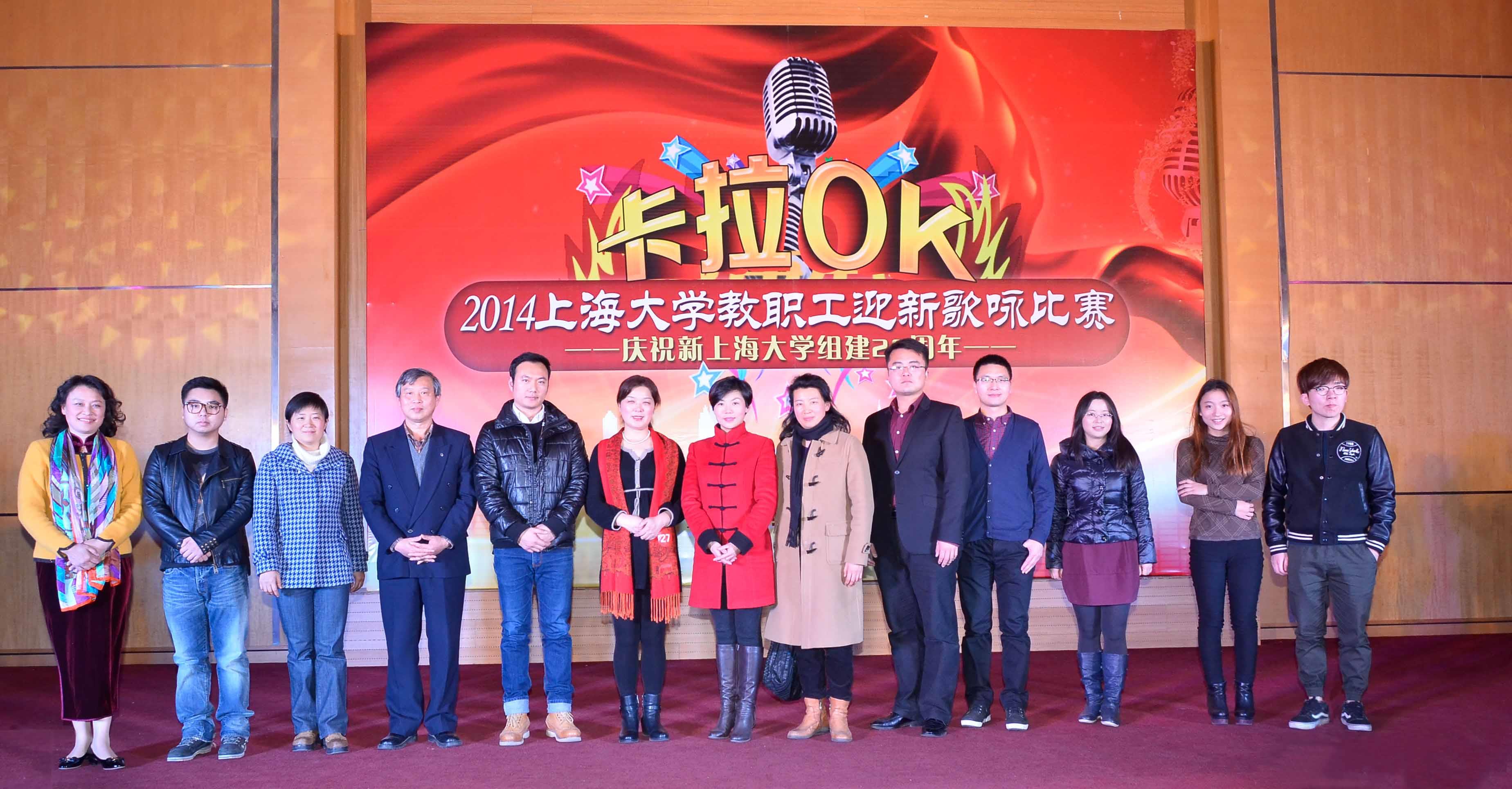 在岁末年初之际,2014年上海大学教职工迎新歌咏(卡拉OK)比赛于12月25日下午在校本部图书馆报告厅拉开了帷幕。校党委副书记、纪委书记夏小和出席比赛现场并发表了致辞。校工会主席忻平,校工会常务副主席姜继平出席了比赛。来自各学院(系统)师生200多人参加了比赛。