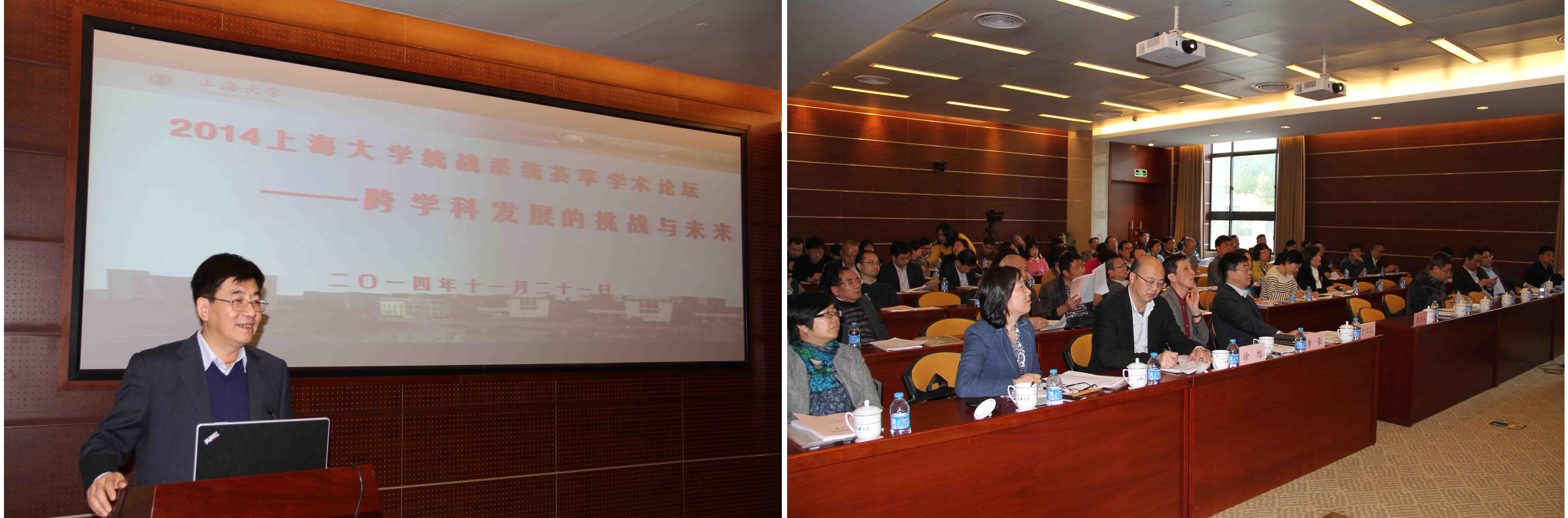 11月21日下午,“2014上海大学统战系统荟萃学术论坛——跨学科发展的挑战与未来”在校本部乐乎新楼2号楼思源厅举行。校党委书记于信汇,副校长唐豪,校党委常委、组织部部长徐旭等领导出席,各民主党派、统战团体、无党派人士代表,各学院(系统)党委、直属党总支分管统战工作领导等70余人参加了论坛。今年论坛由校党委统战部主办,民革上大委员会、校知联会共同承办。校知联会副会长秦钠和民革上大委员会主委屠大维分别担任上下半场主题报告主持人,论坛由校党委统战部部长李红主持。