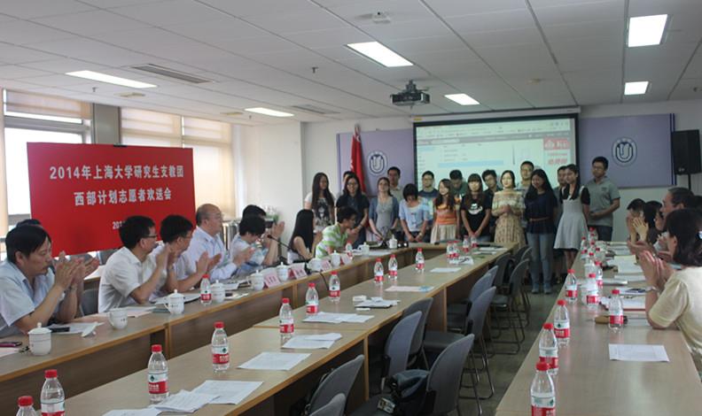 7月3日下午15:45,2014年上海大学研究生支教团、西部计划志愿者欢送会在校本部行政楼501会议室召开。上海大学党委常委、组织部部长徐旭,研究生工作部部长兼研究生院副院长林海霞,学工办主任王军华,校党委组织部副部长、团委书记胡大伟及部分学院党政领导、学生工作分管书记出席了欢送会,研究生支教团成员、西部计划志愿者及其导师、辅导员、亲朋好友等代表一起参加了欢送会。