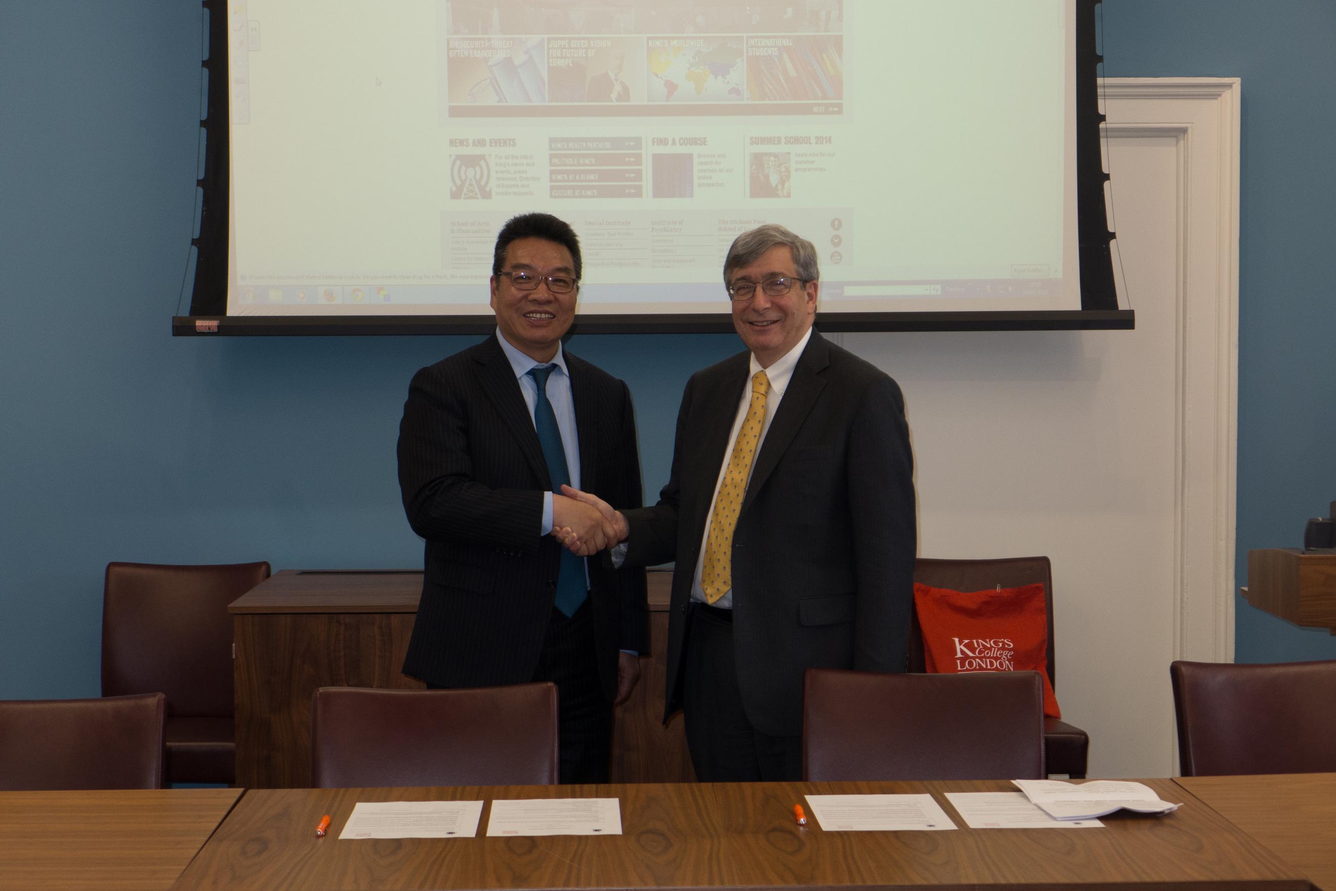 5月28日下午2点半(伦敦时间),罗校长率上海大学代表团一行,访问了英国著名学府英国国王学院,并受到该校校长Sir Richard Trainor一行的热情接待,双方介绍了各自学校特色,并就数字人文、数字媒体、创意研究、以及电影研究等领域进行了友好交流和热烈讨论。参加会见的还有国王学院主管国际合作副校长Joanna Newman,国际合作处处长Alexander Heinz,文化、媒体以及创意产业系系主任,电影研究系教授Chris Berry。我校参加会见的有国际事务处处长万旺根,国交学院院长姚喜明,学工办主任林海霞,研究生院学生培养处处长毛建华,数码学院副院长何小青。会见后,双方校长就双边学生交流项目签署了合作协议。