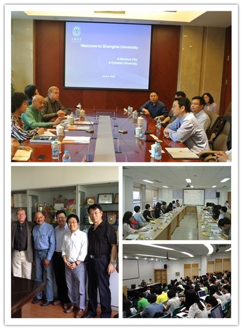 当天下午,苏智欣教授还为各部处、学院的外事院长和教学秘书带来了一场题为“中美教学的对比研究”的报告,生动的案例、简洁的语言和实用的信息吸引了很多老师提问。除此之外,5月26日至6月3日,Nate Thomas教授和 Robert Gustafson教授访问上海大学期间,参观了宝山延长校区教学实验室和影视工作室影视学院工作室,并与影视学院领导和教师座谈,进行了学术交流。其中Nate Thomas教授以 The current situation and the development trends of U.S. Feature Film Production和How the U.S. TV industry innovates and develops by taking advantage of new media technologies为题目,给我校影视学院大一和大二的同学带来了精彩讲座。Robert Gustafson教授以Recent Developments in TV and Film Entertainment Industry in Hollywood和New Characteristics in the production of film and TV programs in the U.S.为主题与我校影视学院研究生展开seminar,共同探讨了美国电影最新发展和学术领域新进展。亲切的会谈,精彩的讲座和热烈的交流让我们相信两校未来合作将会更加美好。