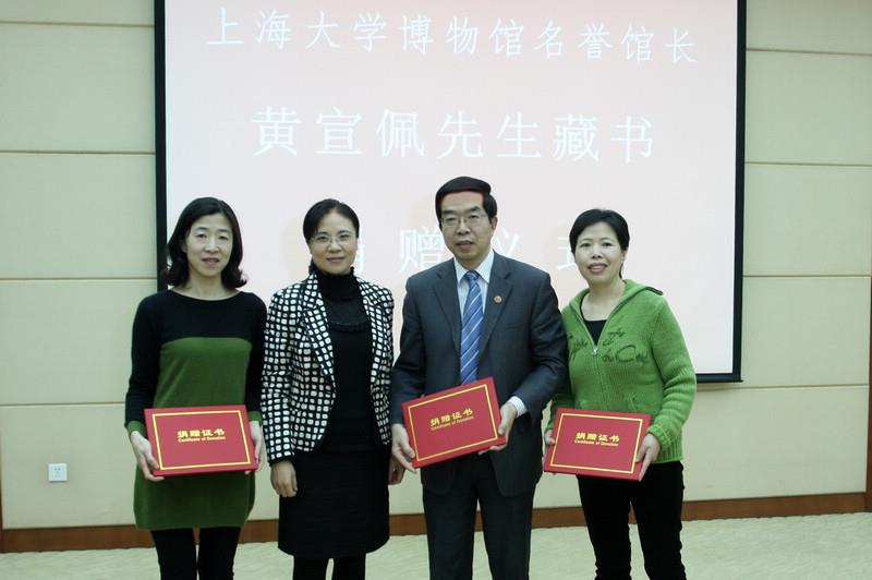2013年6月黄宣佩先生不幸病逝,其子女秉持父亲遗愿,将其毕生收藏的考古学、文物与博物馆学近两千册的书籍、资料捐赠给上海大学以支持上大博物馆的筹建。藏书系统全面,具有很高的学术价值,为上海大学博物馆的发展奠定扎实的学术研究基础。