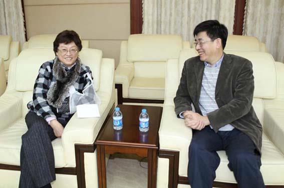 (上图为原国家教育部副部长吴启迪女士与上海大学书记于信汇亲切交谈,充分肯定我校开办广告教育20年来所做出的成绩)