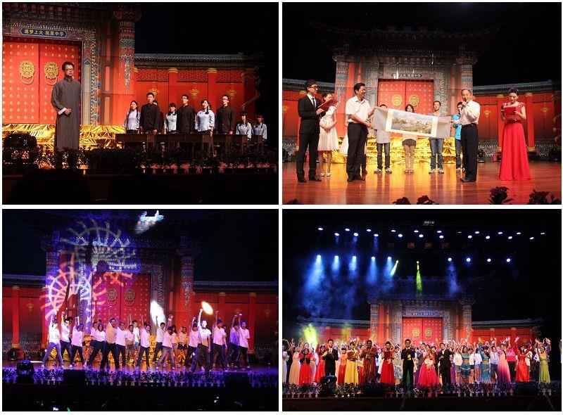 晚会在上海大学学生自编自导自演校史剧《红色学府》的场景片段中拉开了的序幕。《红色学府》让每个上大人了解,在20年代的中国,有一所老上大这样的红色学府,培养了一大批革命壮士和一大批思想先进的人物。演员们的用心演出传递给现场观众爱国荣校的力量,每到精彩段落,全场掌声雷动。随后,在铿锵有力的鼓声中,充满传统中国特色的红色大门带给现场浓浓的节日气氛。研究生同学通过歌曲《蜗牛》、《梦田》,展现上大学子在校园中逐梦成长;而研究生同学与老师合作表演的节目《爱的守候》则让大家感受到了师生共筑中国梦的愿望。