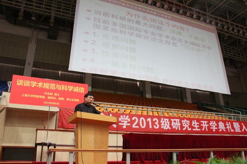 9月1日上午,上海大学党委常委、副校长叶志明以“谈学术规范与道德诚信”为主题,为全体2013级研究生作了一场精彩讲座。
