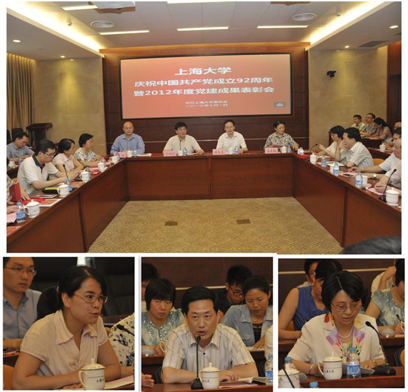 “上海大学庆祝中国共产党成立92周年暨2012年度党建成果表彰会”于7月1日下午,在校本部乐乎新楼思源厅举行,校党委书记于信汇,校党委副书记、副校长李友梅,市教卫工作党委组干处副处长顾大文以及各学院(系统)党委、直属党总支书记,特邀党建组织员,以及组织生活案例、基层党建“好项目”和党建研究课题的获奖代表出席了此次大会。会议由校长助理、组织部部长徐旭主持。
