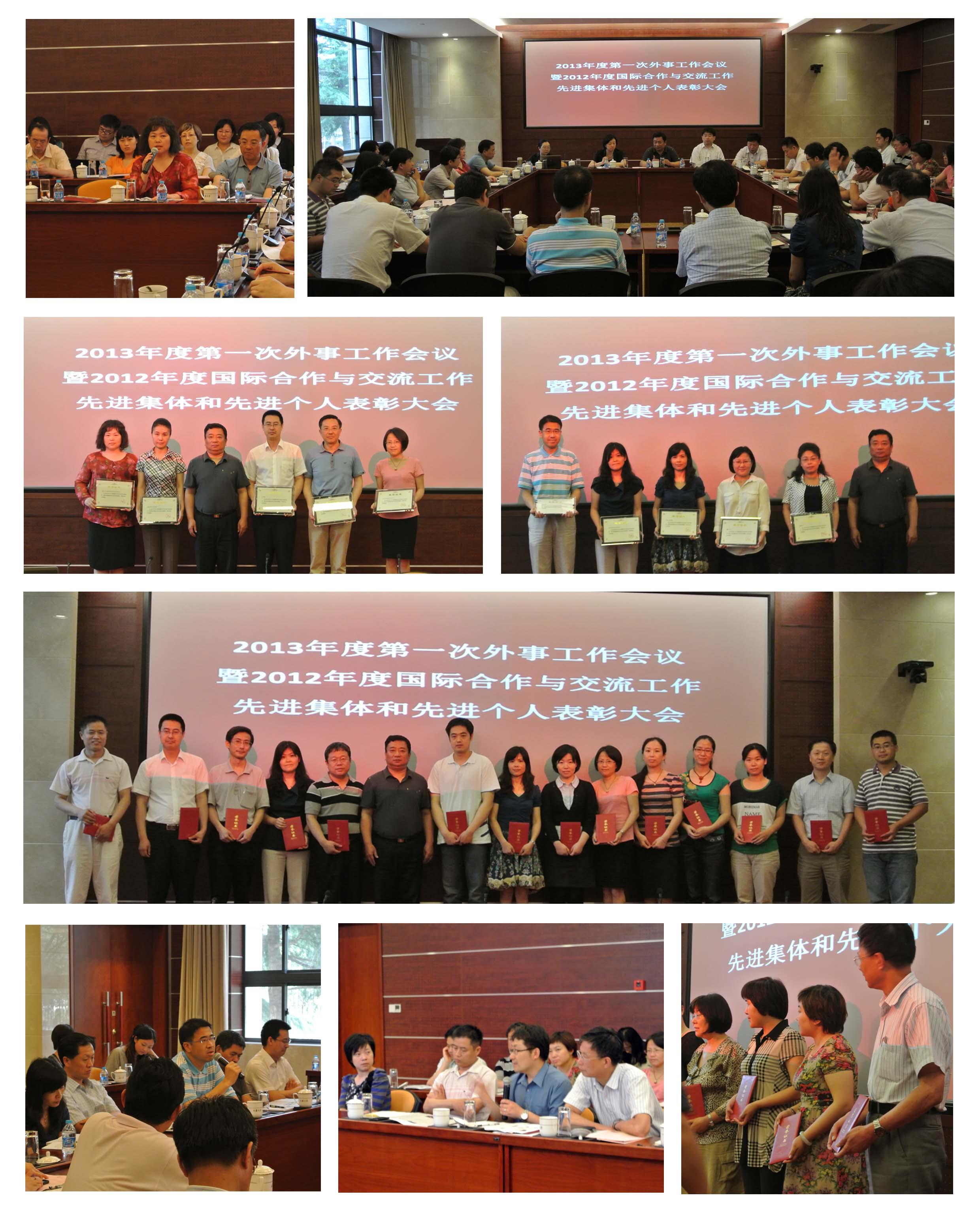 6月18日下午,2013年度第一次外事工作会议暨2012年度国际合作与交流工作先进集体和先进个人表彰大会在校本部乐乎新楼2号楼思源厅举行,校党委常委、副校长吴松,校长助理、外事处处长龚思怡、各学院外事院长,相关部处领导、上海大学2012年度国际合作与交流工作先进集体代表及先进个人等60余人参加了会议。会议由龚思怡主持。
