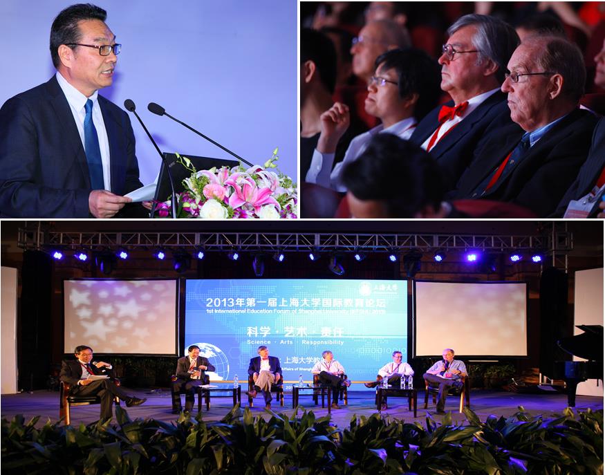 为更好地推进我校国际化战略,6月21日,由我校教务处主办的2013年度上海大学第一届国际教育论坛在上海大学宝山校区图书馆报告厅成功举行。上海市教委高教处副处长傅建勤和上海财经大学、华东政法大学、上海理工大学、上海师范大学等兄弟院校教务处领导以及我校各部处领导、院系教学院长、骨干教师、青年学生、媒体工作者400余人参加了本次论坛。出席论坛的还有学校聘请的来自美国耶鲁大学、加州大学、杜克大学、华盛顿大学、纽约州立大学、肯塔基大学,英国曼彻斯特大学、伯明翰大学,爱尔兰科克大学,澳大利亚悉尼大学等世界名校的80多位“洋教授”。他们在本次上大国际化小学期中为数千大一新生开设全英语课,课程内容涵盖经济管理、人文社会科学、影视媒体艺术以及数学、物理、通信、材料、电学等理工学科。