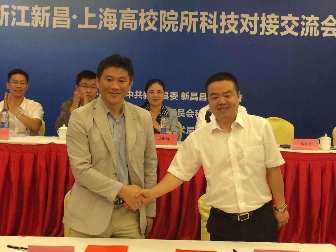 科技对接交流会上同时举行科技合作协议的签约仪式,我校科技处朱晓锦副处长、新昌县委组织部邵永明部长代表双方签署了“关于建立上海大学-新昌县协同创新中心”协议。签约仪式后的科技对接交流环节,我校新材料、精细化工、特种电机、生物环境、自动化装备、机器视觉检测、机电一体化技术等方向的教师,与新昌县相关企业领导及技术负责人进行了深入沟通与交流。