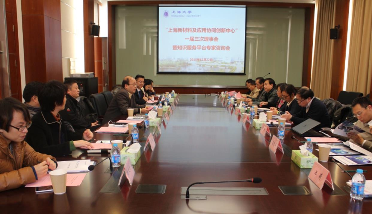 2015年12月22日,“上海新材料及应用协同创新中心”一届三次理事会会议在上海大学教育部工程中心(碳碳大楼)一楼会议室顺利召开。会议由上海大学科技处副处长施鹰教授主持,上海市教育委员科技发展中心许开宇主任、上海市教育委员会科技处蒋浩老师,以及来自各相关理事单位的领导和嘉宾出席了会议。