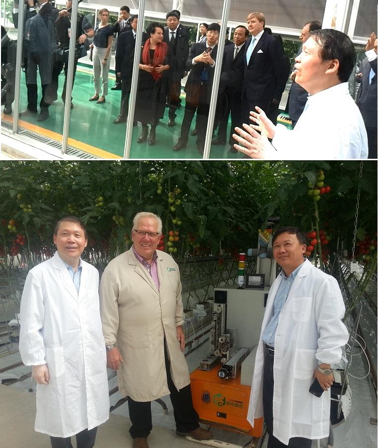 10月28日,荷兰王国威廉·亚历山大国王一行参观了上海都市绿色工程有限公司国家设施农业工程技术研究中心崇明农业示范基地,并在温室现场着重观看了由上海大学提供技术与上海都市绿色工程有限公司提供需求联合自主研制开发的植物生长智能巡视机器人,并听取了现场汇报。