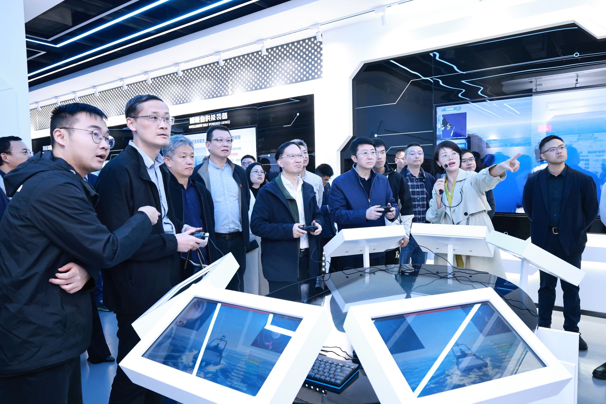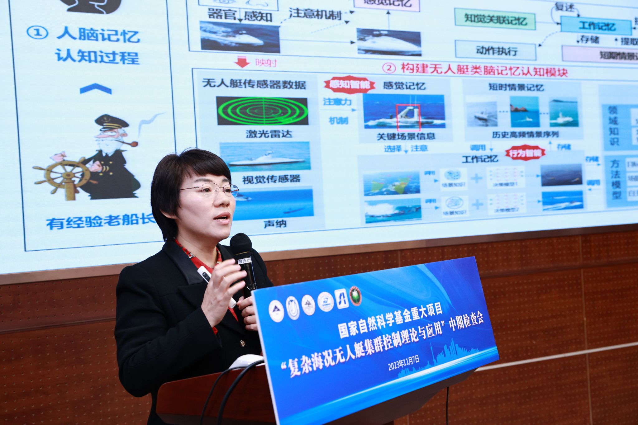 专家组组长王耀南院士主持中期检查会。项目负责人上海大学谢少荣教授汇报了“复杂海况无人艇集群控制理论与应用”项目整体进展和中期成果。山东大学张伟教授、华中科技大学苏厚胜教授、中国科学院沈阳自动化研究所唐延东教授、北京理工大学俞成浦教授、上海大学谢少荣教授分别汇报了本项目五个课题“复杂海况下海洋环境智能感知方法研究”“复杂海况单艇准确完备自主感知机理研究”“复杂海况多艇实时交互认知机制研究”“复杂海况无人艇集群智能协同控制决策方法研究”“复杂海况典型无人艇集群应用验证平台研究”的中期进展与研究成果。评审专家前往上海大学精海智能一楼展厅现场观看和检查了项目成果,上海大学彭艳教授进行讲解介绍。
