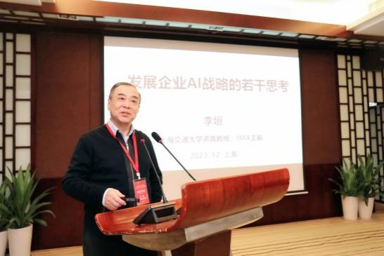 上海交通大学李垣教授以“发展企业AI战略的若干思考”为主题进行演讲,系统探讨了AI改变了企业什么?如何利用AI系统实现价值共创?如何有效治理企业AI系统?如何有序升级企业AI系统?以及政策和环境如何影响企业AI战略等重要问题。上海人工智能实验室王延峰教授以“通用大模型与产业变革”为主题,对通用大模型——人工智能发展新范式以及领域大模型——大模型的行业应用等进行系统介绍,着重分享大模型在医疗健康和生成式智能媒体等领域的应用成果,及其对管理学理论的挑战。