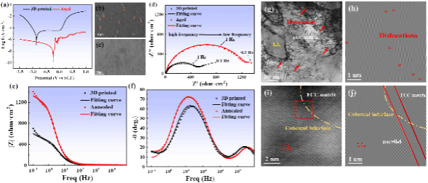 图3. 时效处理前后高熵合金样品的电化学腐蚀性能与透射电镜图像。