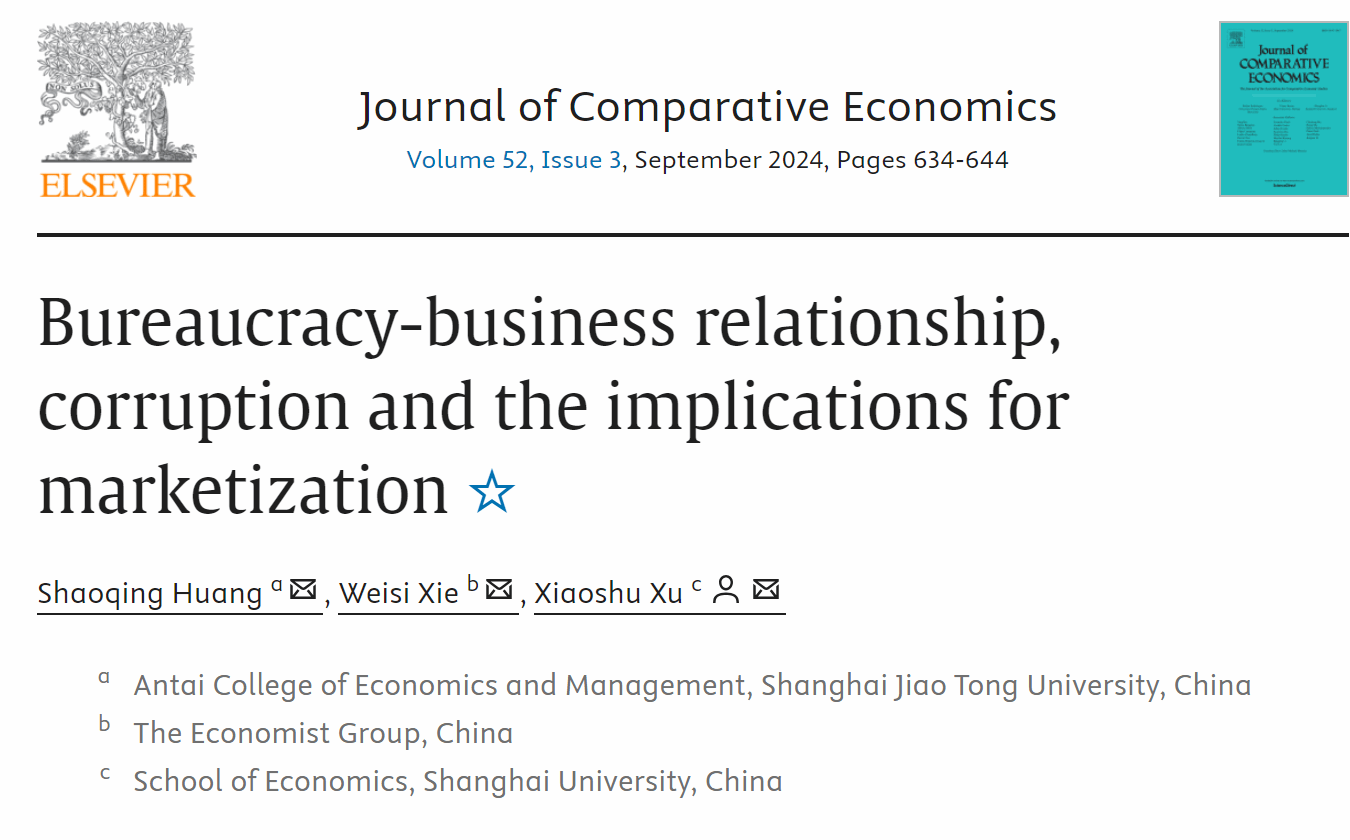 由上海大学经济学院产经中心徐晓书副教授担任通讯作者的论文Bureaucracy-business relationship, corruption and the implications for marketization