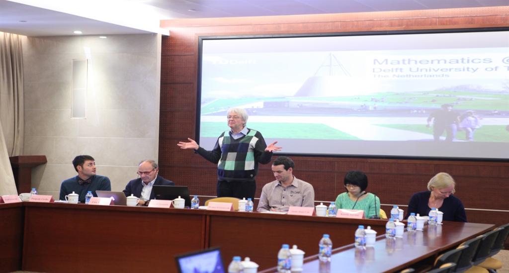 应上海大学理学院邀请,2014年11月18日荷兰代尔夫特理工大学(TU Delft)应用数学学院代表团在代尔夫特理工大学战略发展与研究创新中心代表Cees Timmers先生的带领下,一行7人来上海大学理学院进行双边合作访问,并与理学院相关教授和研究生就科研方向和科研成果、国际上流行的MOCK在线课程等方面举行了学术研讨。研讨会于上午八点三十分在乐乎新楼学海厅举行。理学院党委书记盛万成教授首先致欢迎辞,对来自荷兰的客人表示欢迎,并介绍了上海大学数学学科的教师结构和学科发展、招生规模等相关情况,并希望通过本次研讨会取得实质性成果,开拓双方在科研合作、学生交换交流等方面的合作,实现双赢。 理学院数学系主任王卿文教授、党总支书记张大军教授,数学系副主任白延琴教授分别主持了荷兰代尔夫特理工大学数学院6位教师代表的报告。
