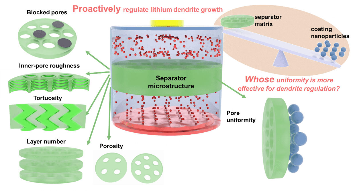 图1. 锂基电池隔膜微结构对枝晶的调控机理。