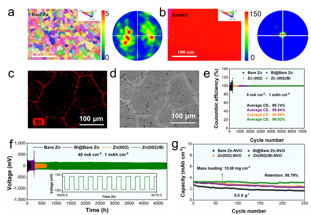 图2 锌负极实现单一织构与晶界强化的协同及其电池性能展示