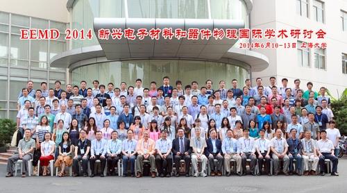 2014上海大学新兴电子材料和器件物理国际学术研讨会于2014年6.10-14日在上海大学乐乎新楼举行。来自包括加拿大、美国、新加坡、以及中国香港、台湾和大陆的150多名代表莅临会议,本次研讨会得到了国家自然科学基金委员会、上海市物理学会、上海超级计算中心的资助,由上海大学理学院物理系承办。