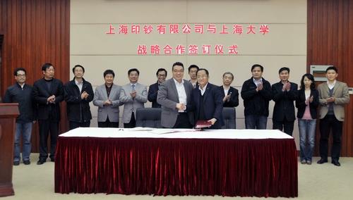 上海印钞有限公司是隶属于中国印钞造币总公司的一家大型骨干印钞企业,专业从事人民币和增值税专用发票、银行专用票据等有价证券及护照等高级防伪证书的生产经营,目前已发展成为拥有先进工艺技术、精良机械设备、科学经营管理、良好品牌信誉的现代化企业。我校近年来不断深化产学研联合,推动高校科技资源与产业结合,促进先进适用技术向企业转移,为以企业为主体的技术创新体系建设、产业结构优化调整、产业技术水平提升和新型工业化发展提供科技支撑与服务。为充分发挥双方产学研合作资源优势,共同为经济建设做出新贡献,经上海印钞有限公司与上海大学协商,一致同意以推动企业科技进步和学校学科建设为目标,共同在科技协同创新、高科技推广、成果转化和人才培养等领域开展全方位合作。双方战略合作协议的宗旨和目标是,通过合作加强双方的交流和研讨,发挥各自的特长和优势,形成产学研共同发展、协同创新的运行机制;将高新技术和产品研发与联合培养中、高级人才相结合,增强技术研究的自主创新力和核心竞争力;积极推动重大科研成果的转化和产业化,促进企业科技进步,提升学校学科建设水平。