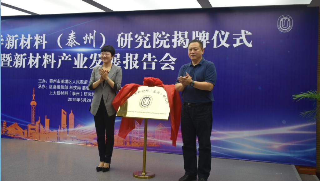 5月29日,上海大学新材料(泰州)研究院揭牌仪式暨新材料产业发展报告会在江苏省泰州市姜堰区智谷软件园3楼报告厅召开。会议由姜堰区副区长杨剑主持。上海大学资产经营管理有限公司总经理潘志浩,上海大学组织人事部组织处副处长于伟,上海大学创新管理部综合办公室主任于瑞强,上海大学材料学院院长董瀚,党委委员张捷宇,副书记席慧霞,副院长韦习成,副院长李运波,国家重点实验室副主任、总支书记邵玮,姜堰区区委副书记、农业园区党工委书记孙靓靓,姜堰区组织部部长孔令明及姜堰区政府办、人才办、工信局、财政局、科技局、高新区主要负责人;科技镇长团全体成员;各镇、街道、园区分管科技负责人、科技人才助理;有关高新技术企业、科技型企业技术负责人共计100多人参加了此次揭牌仪式。