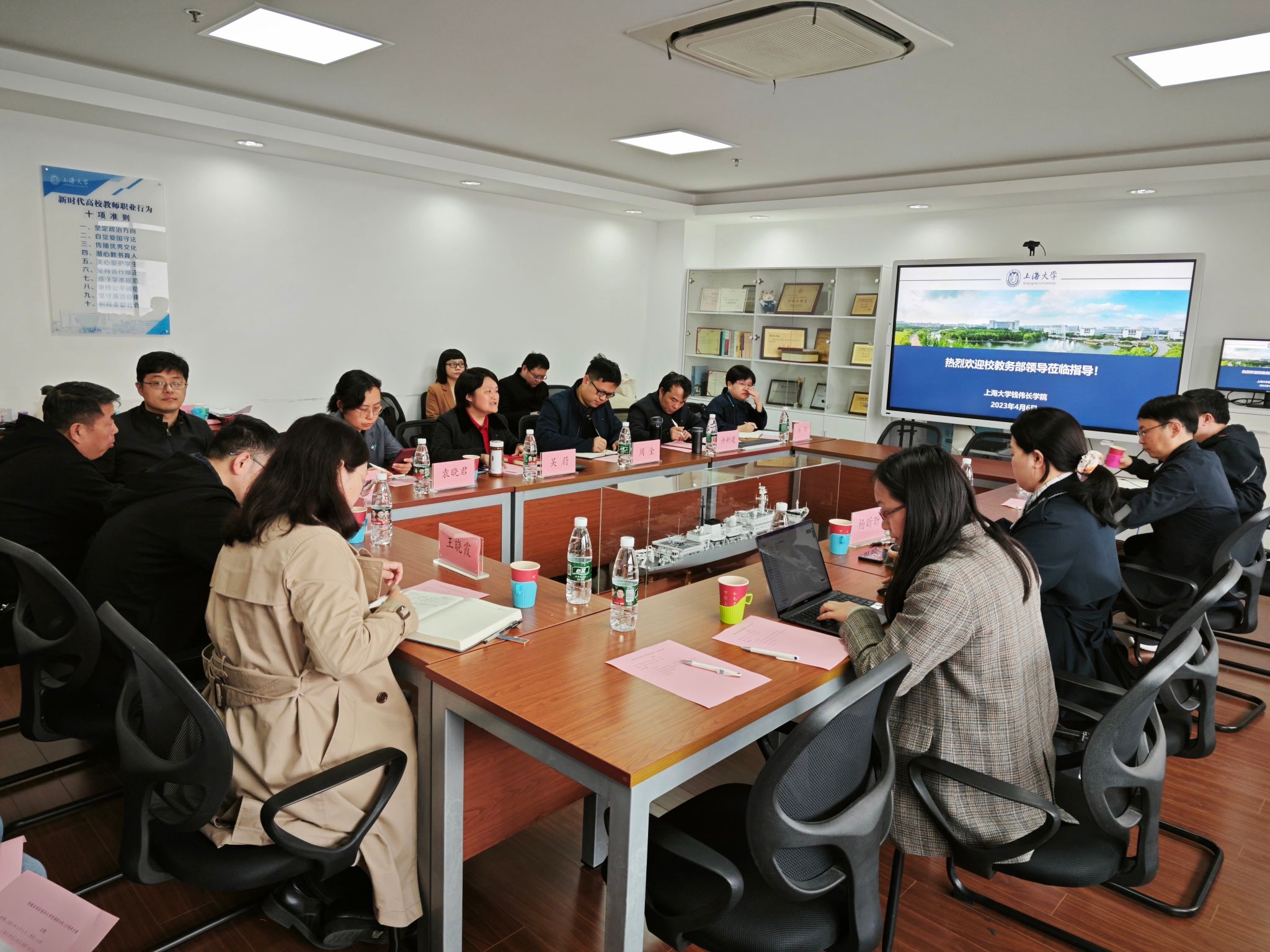4月6日上午,校教务部常务副部长彭章友、教学建设处处长杨昕昕及来自教务部教学建设处、教学改革处老师一行赴钱伟长学院调研交流本科人才培养方案。钱伟长学院党委书记吴蔚,党委副书记、院长周全,副院长许新建以及专业负责人、学生代表出席会议。