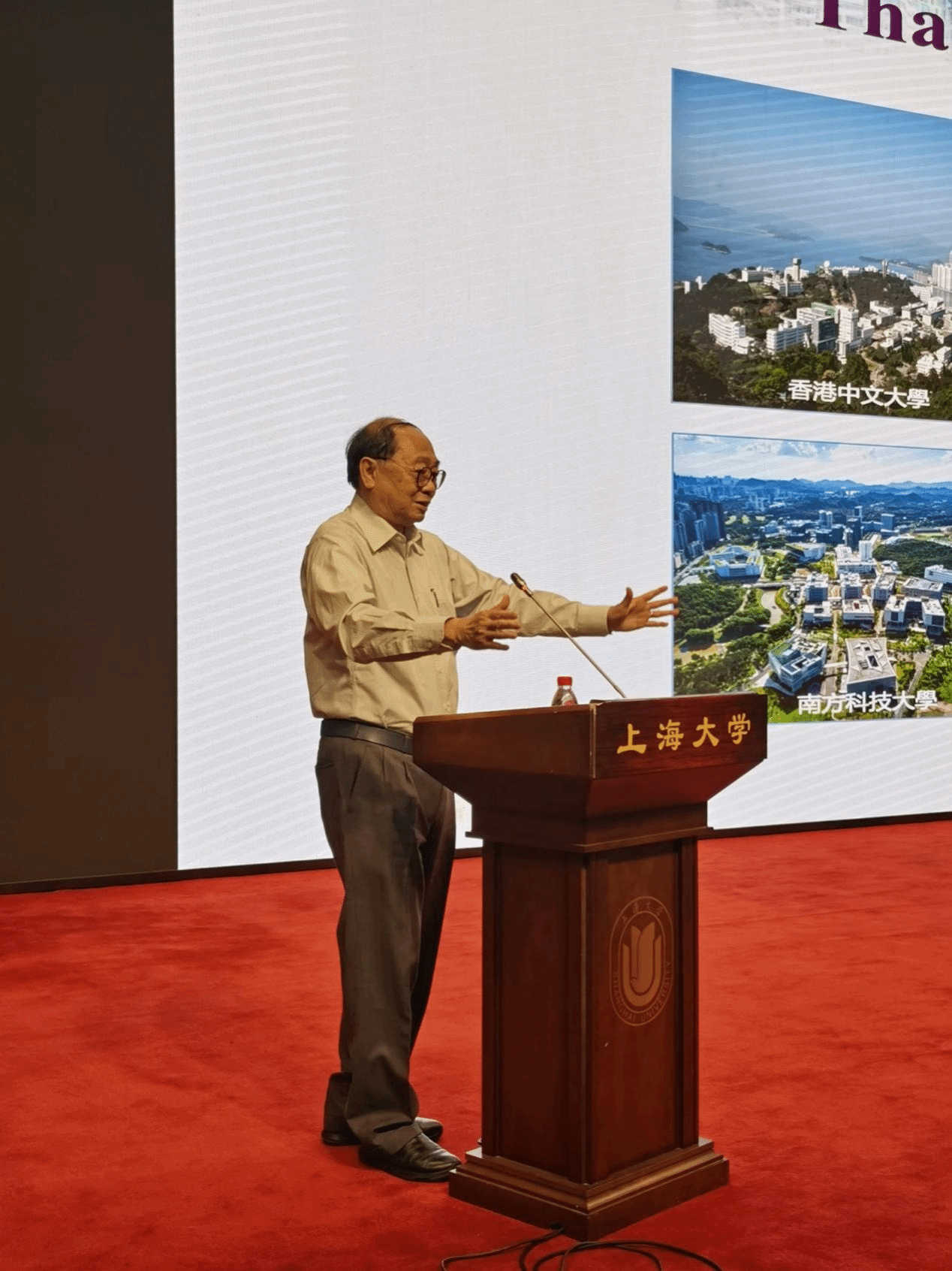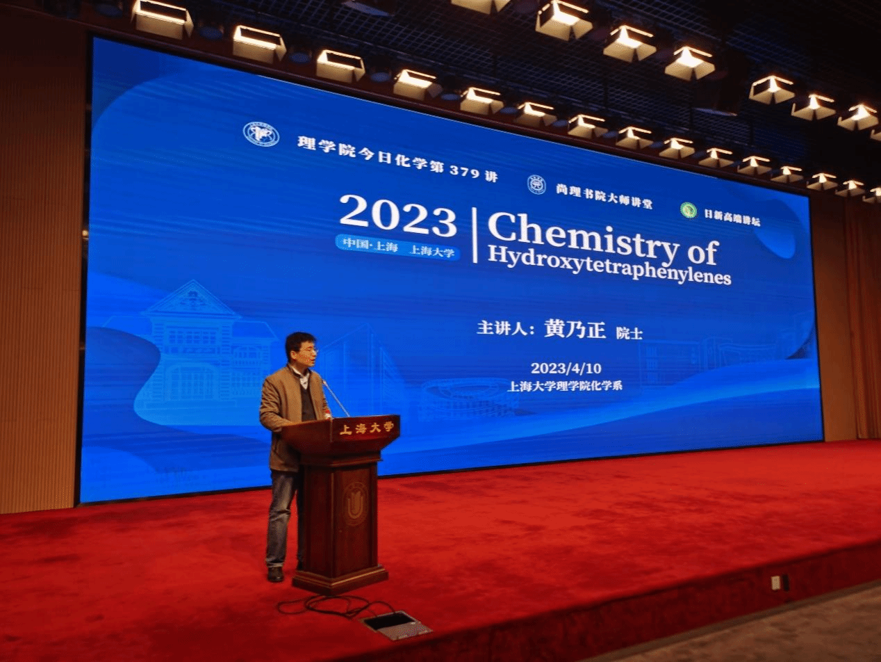 4月10日,香港中文大学黄乃正院士应邀来上海大学访问,并在新校区图书馆报告厅作了题为Chemistry of Hydroxytetraphenylenes的学术报告。该报告作为理学院“今日化学”第379讲,同时列入尚理书院“大师讲堂”和“日新高端讲坛”。理学院党委书记盛万成教授、理学院副院长徐甲强教授及戴晔教授、中科院有机所刘国生研究员、理学院化学学科党总支书记邢菲菲老师、化学系党政领导班子成员参加报告会,来自理学院的200多名师生聆听了报告。报告由化学系系主任李健教授主持。