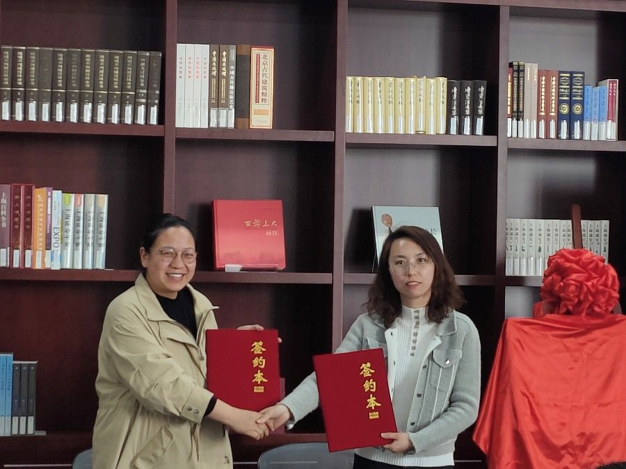 在与会人员的共同见证下,钱伟长图书馆党支部书记田明娟与汉语国际教育学生党支部书记谢文博代表双方签订了党建共建协议。