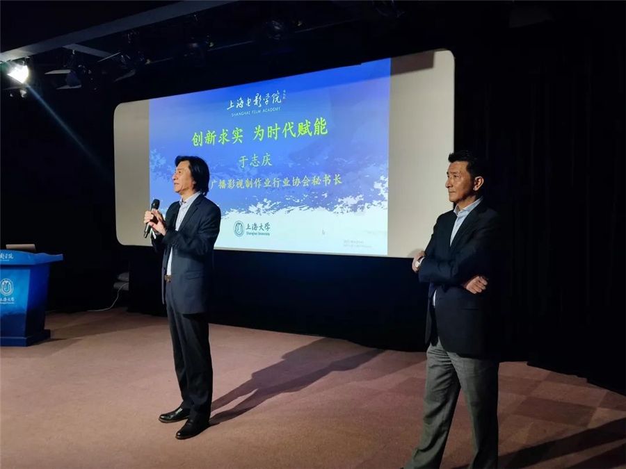 上海大学上海电影学院执行院长何小青教授对于志庆先生长期以来给予上海电影学院的支持表示感谢,并为其颁发聘书,聘请于志庆先生为上海大学上海电影学院特聘教授、电影艺术硕士(MFA)业界导师。于志庆也向聆听讲座的同学们赠送了图书。