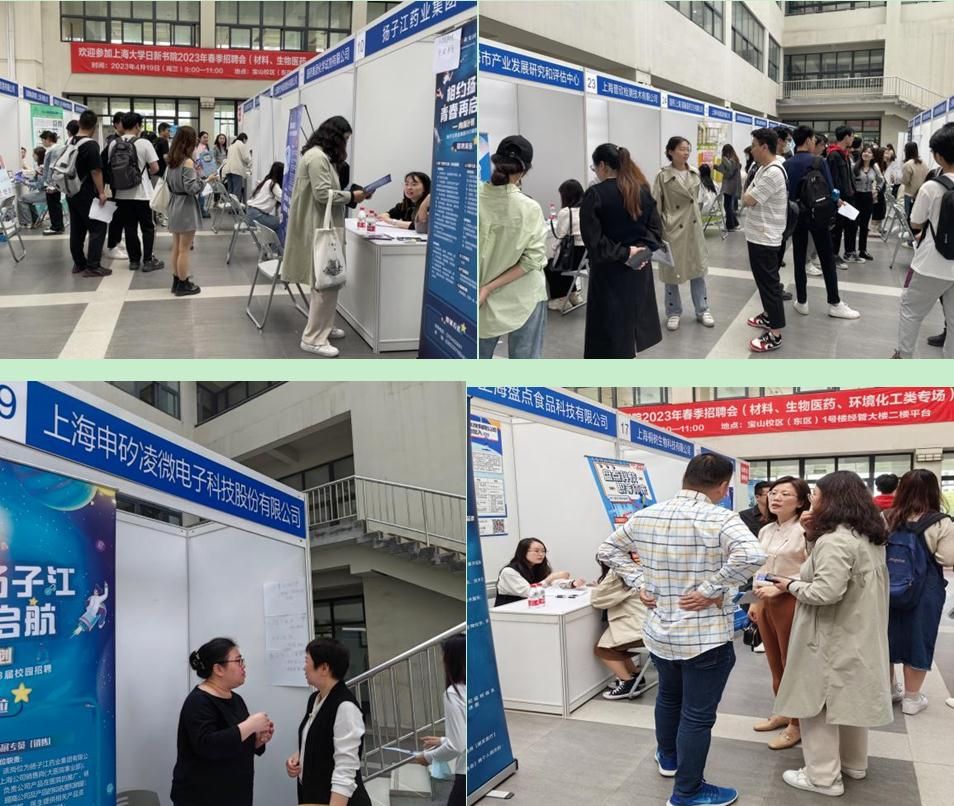 揽一程清风,聚天下英才而用之。为推动精准落实我校2023届毕业生就业工作,拓展毕业生高质量就业市场,搭建与用人单位双向选择平台,4月19日上午,上海大学日新书院2023年毕业生春季(材料、生物医药、环境化工类)专场招聘会在宝山校区东区1号楼经管学院2楼顺利举行。上海大学招毕办市场主管胥俊、环化学院常务副院长王勇、材料学院党委副书记、副院长祁晶、生命学院党委副书记、副院长朱晓青以及各学院辅导员出席本次活动。
